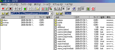 ファイルのアクセス権は、通常は書込可能な設定になっています。もし、赤印で「書込不可」と表示された場合は、該当ディレクトリーのパーミッションを指示に従って変更します。